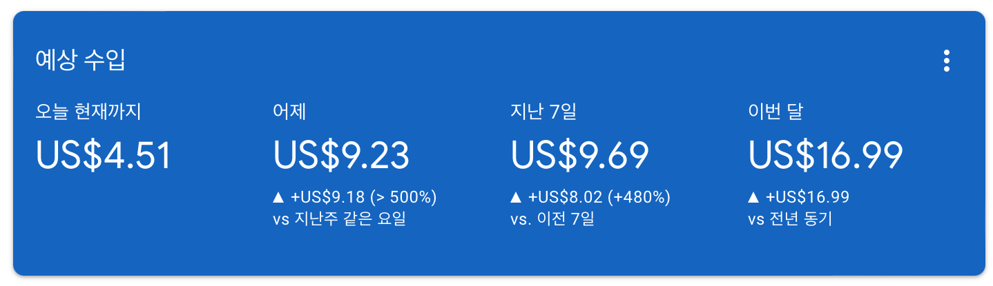 대략 밤 9시경부터 애드센스 수익이 매우 느리게 올라가길래